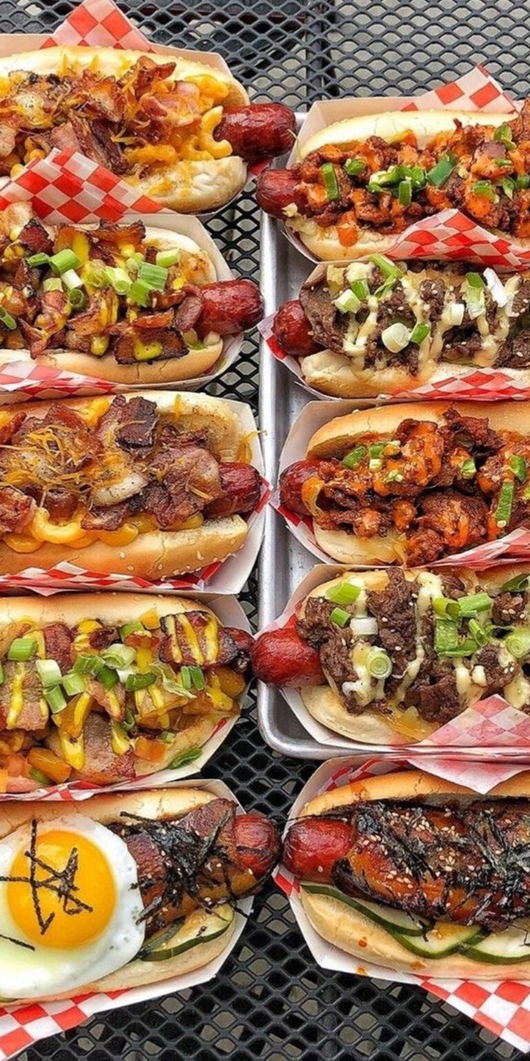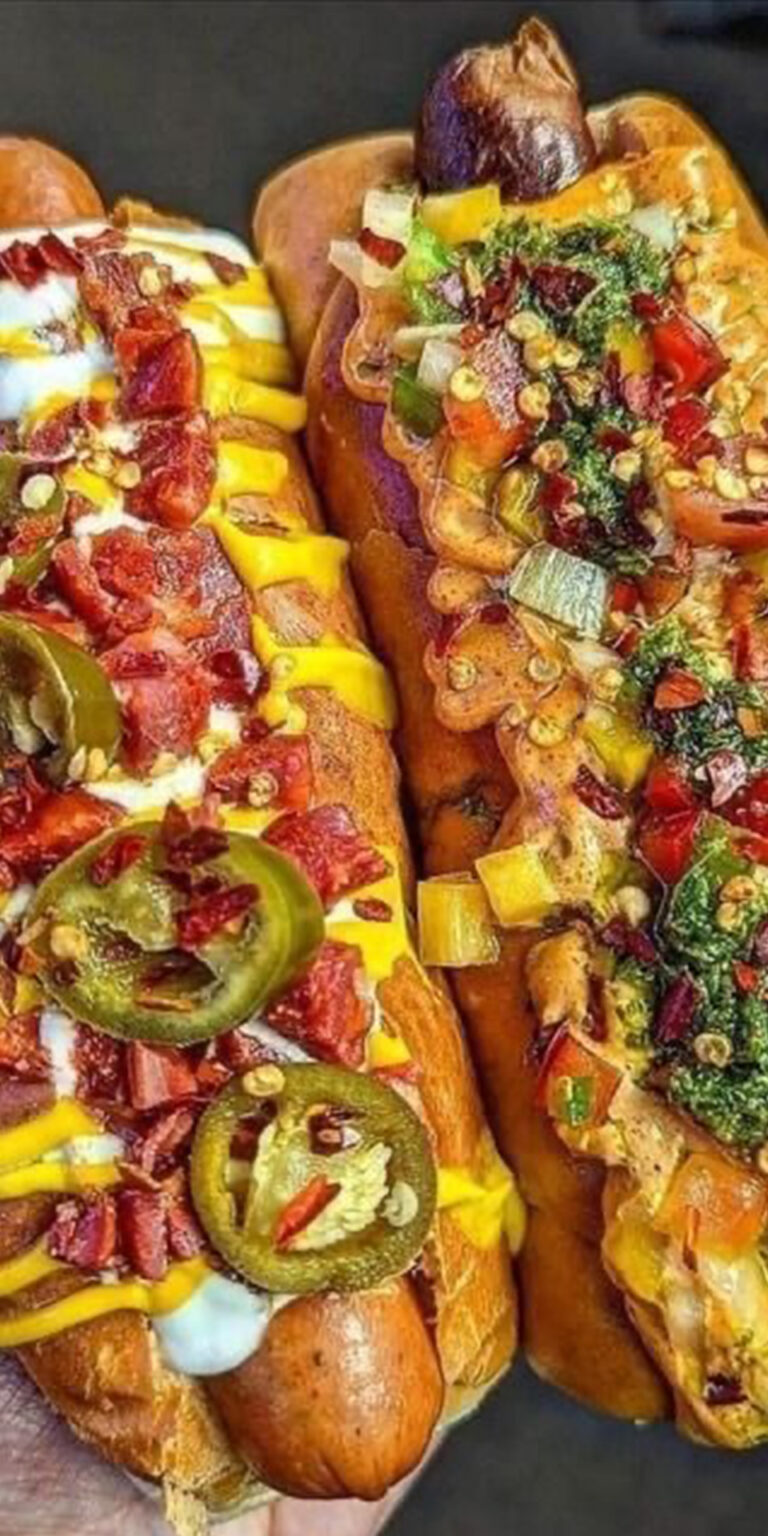 Increíbles Hotdogs Gourmet con pan gratinado de queso parmesano y una exclusiva variedad de adherezos y topings de ingredientes para crear sabores únicos.